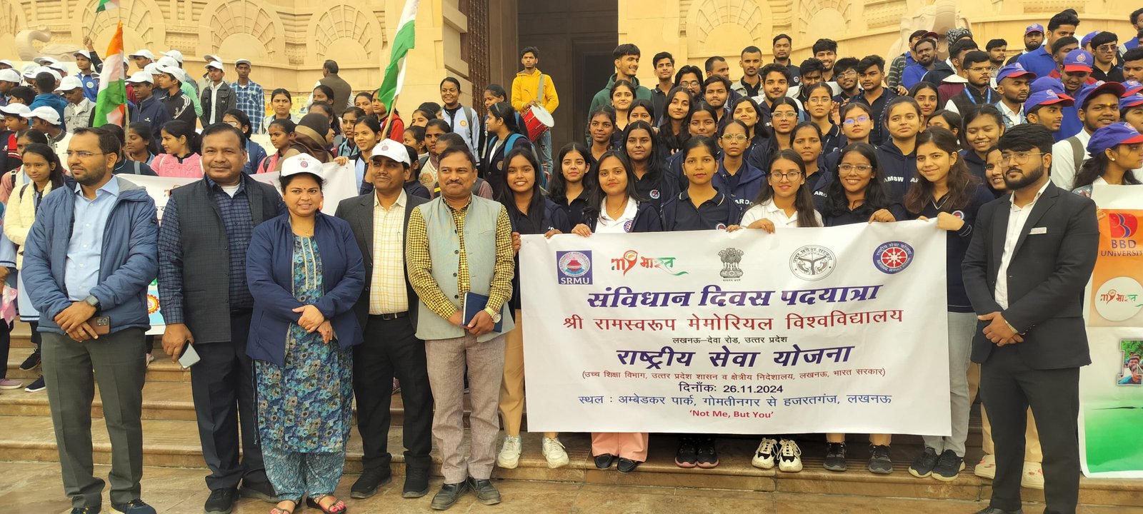 National Service Scheme (NSS) unit of IIBMT, in collaboration with the NSS wing of Lucknow University, the DoHE, GoUP, and the Regional Directorate, GoI, organized a Constitution Day Rally. The rally commenced from the 1090 Chauraha in Gomti Nagar and concluded at the Ambedkar Memorial in Ambedkar Park, Gomti Nagar, Lucknow.